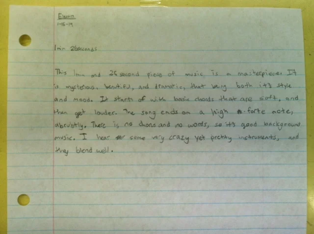 Example of student writing about musical mood.